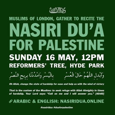 Muslims of London, gather to recite the Nasiri Du'a for the Muslims of Palestine. "Oh Allah, change the state of hardship for ease and help us with the wind of victory"
